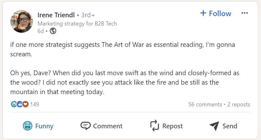 The very late Sun Tzu is to this day mercilessly quoted by various strategy “experts” most likely because it is prestigious to compare the marketing efforts of a small B2B company to the clever battlefield techniques applied by the ancient Chinese generals.